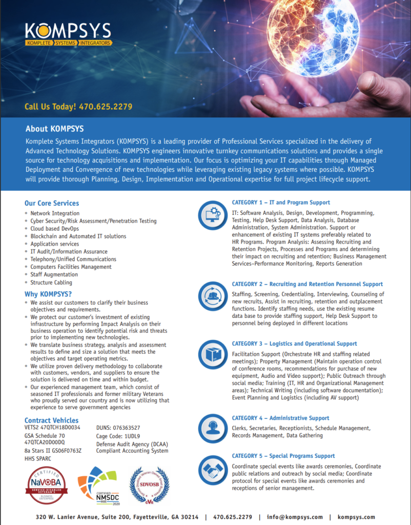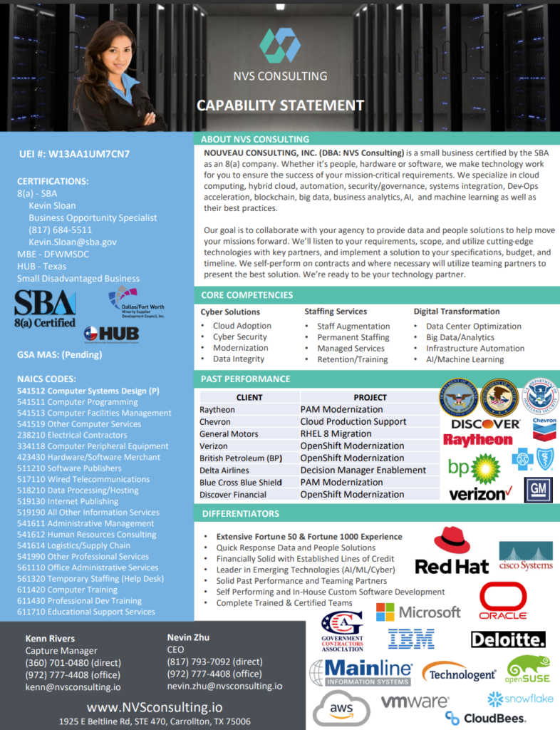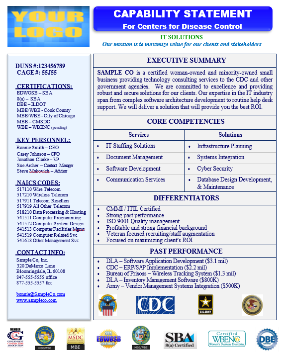 It’s a Great door opener (easy for emailing), helps when describing your company and building relationships. It lets government buyers and teaming partners believe or know you speak governese and it’s concise, easy to understand and finally, it leads to more contract wins.